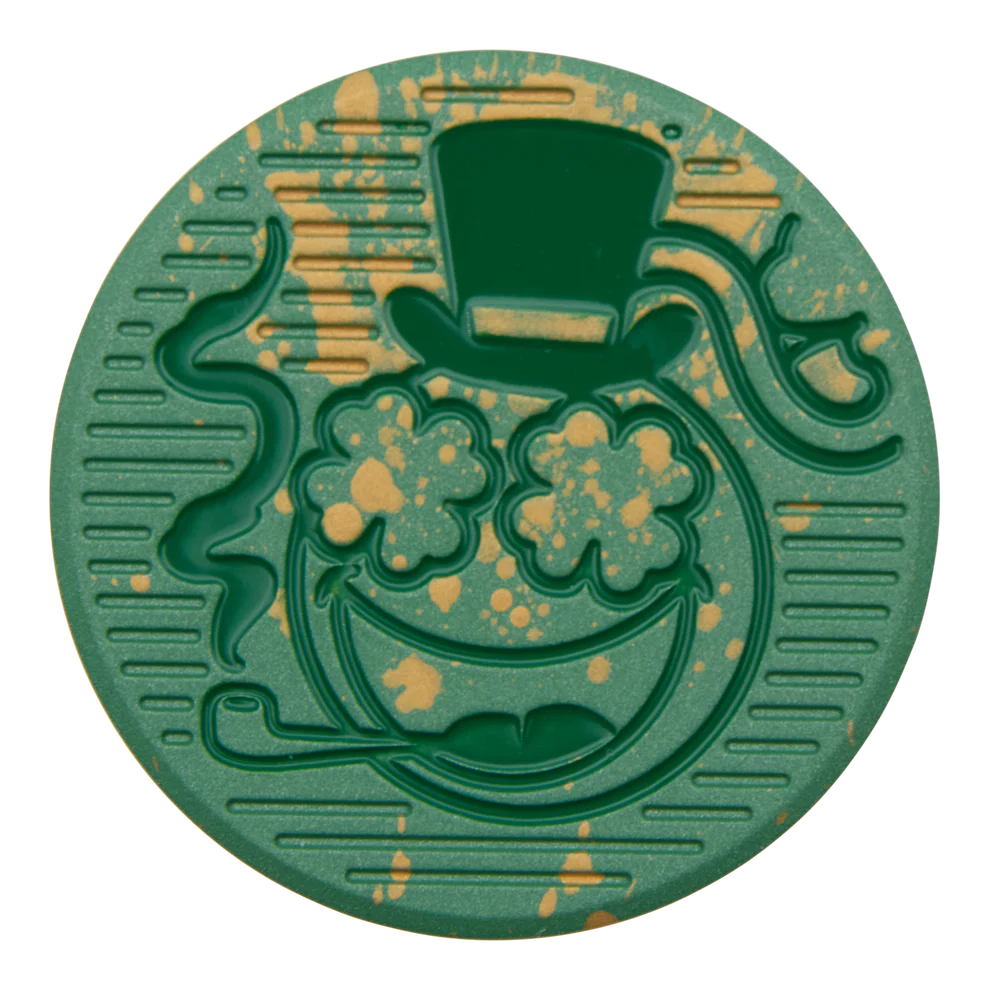 Ah, luck be with ya on the greens with this Green and Gold Splatter Ball Marker! Featuring our Clover Eyes Bomb on one side and a polished Hex B and Bettinardi over Micro Honeycomb™ milling on the other, this fine piece was milled and painted with a wee bit o’ magic at our Tinley Park, IL headquarters. But don’t be dilly-dallyin’—limited quantities are available, and it’s one per lucky golfer! Snag yours before it disappears like a pot o’ gold!