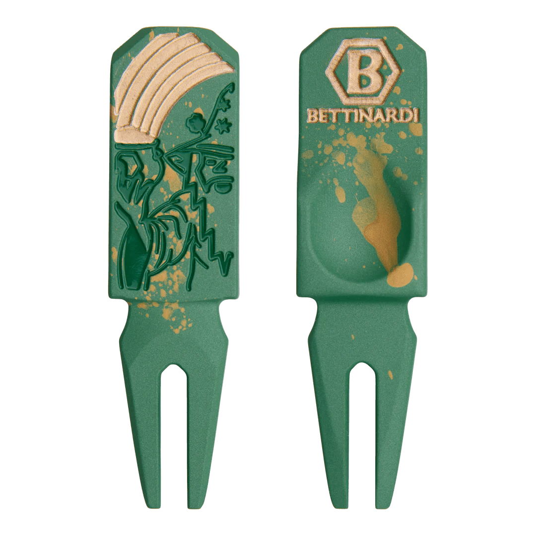 Ah, may the luck o’ the Irish be with ya on the greens! The Charmed Wizard Divot Tool is here to sprinkle a wee bit o’ magic into your game, shimmerin’ in gold paint splatter over a rich green base. On the front, our Charmed Wizard casts his spell o’ fortune, while the back boasts a Hex B logo sittin’ proudly above the thumb contour for a perfect grip. But mind ya, these enchanted tools are scarcer than a leprechaun’s gold—limited quantities, one per lucky golfer!