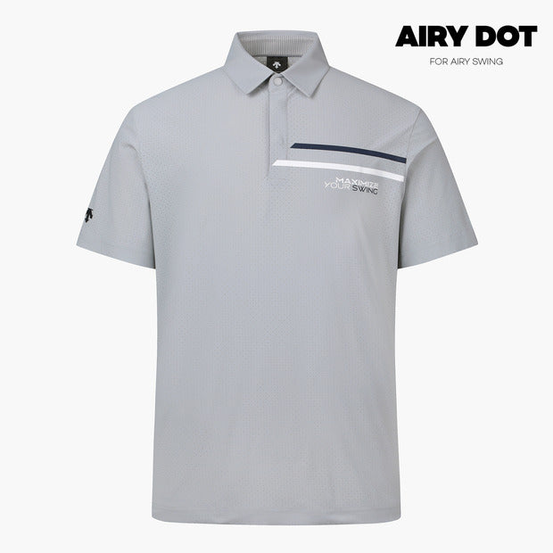 This is a short-sleeved T-shirt with a contrasting chest band and perforated material.