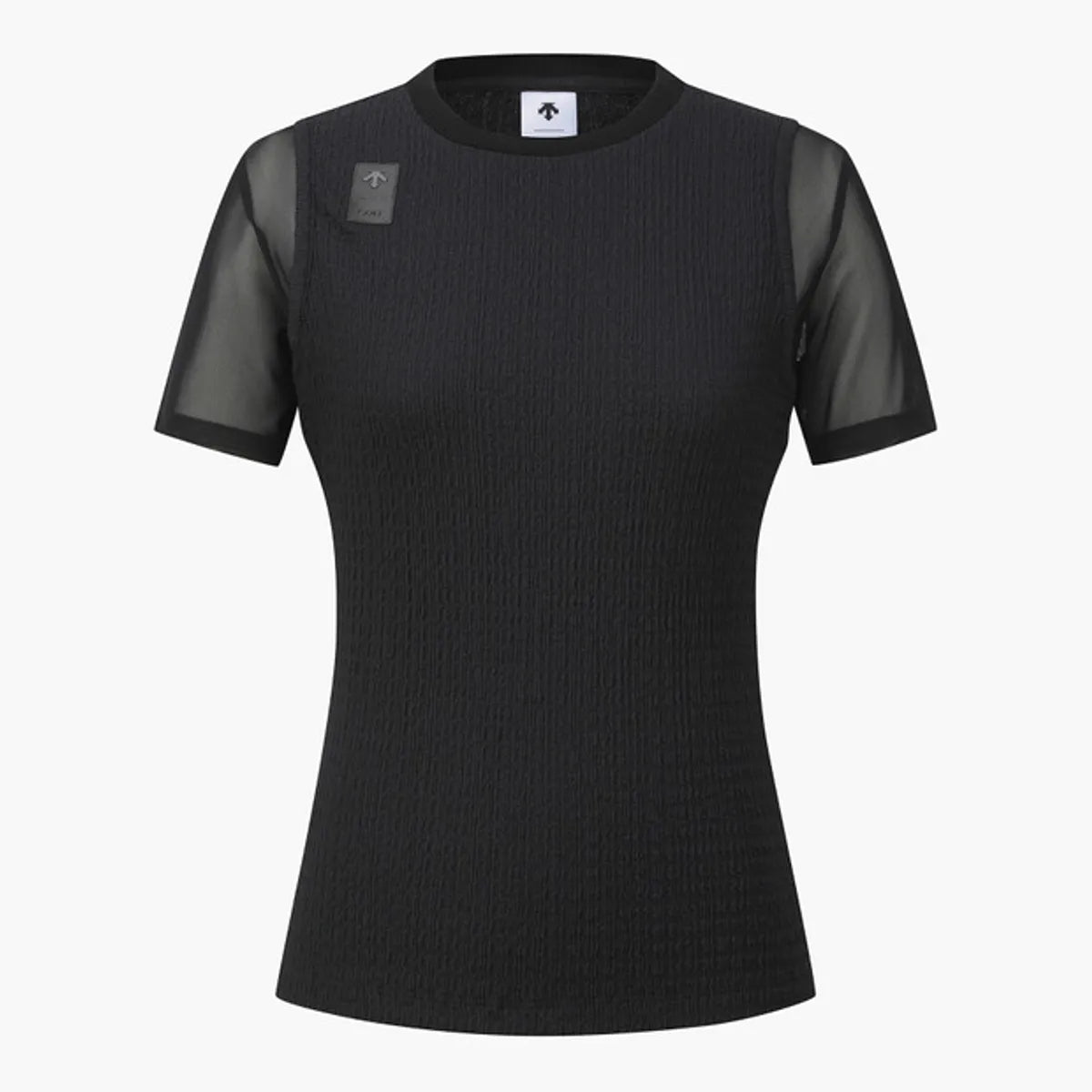 This is a round T-shirt with a feminine silhouette mixed with excellent mesh material.