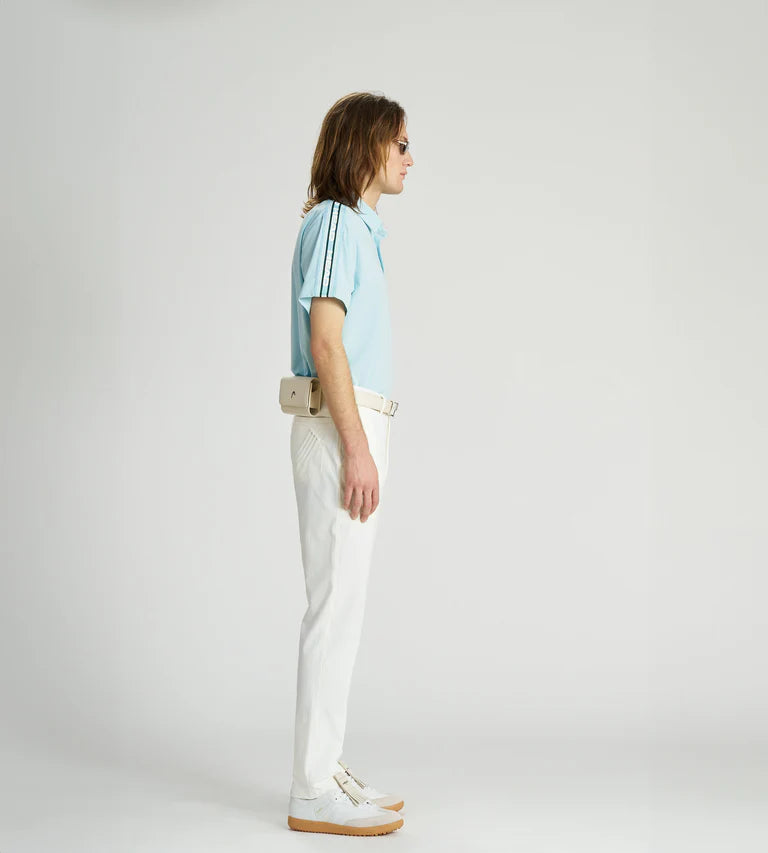 This men?™s shoulder tape polo merges eco-conscious performance with sleek modern style. Highlighted by jacquard stripe knit tape along the shoulders, it adds a distinctive touch to a timeless design. Crafted from COOLMAX and Sorona pique, it offers breathable comfort and exceptional durability. Featuring printed logos at the front and back, a high-low hem, and side slits, it provides effortless movement and all-day comfort, making it perfect for both on and off the course.