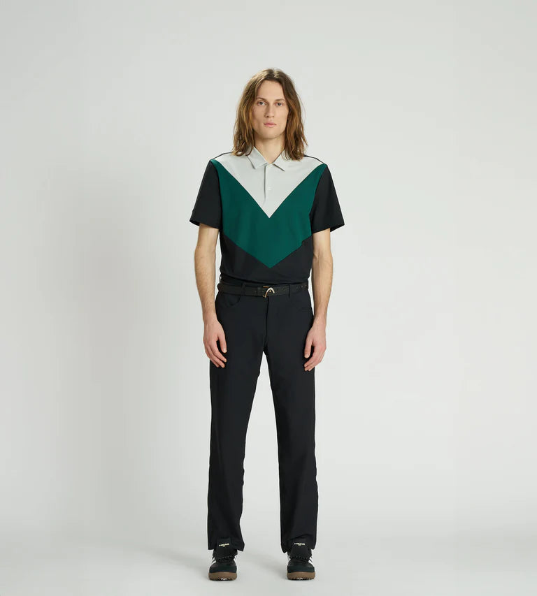 Our signature tour pants take inspiration from classic five-pocket jeans, blending timeless style with modern functionality. Featuring a unique golf tee pocket for easy access and an inner grip elastic waistband, they deliver on-course practicality while seamlessly transitioning to the office and beyond. Crafted from recycled polyester and spandex twill, they offer durability, comfort, and stretch. Finished with printed logos at the front and back and an easy snap-and-zip closure, these pants are designed for versatile, all-day wear.