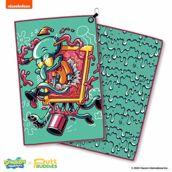 Intorducing the Magnetic 'Krusty' Squidward Golf Towel, an exclusive collaboration between SpongeBob SquarePants™ and PuttBuddies™. This vibrant towel features Squidward's tentacles popping out of a painting while passionately playing his clarinet, perfect for fans of the beloved cartoon.