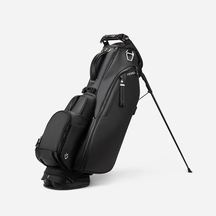 The next generation of golf's most awarded stand bag, the Player V is here to give you the ultimate carry experience. From the hidden valuables pocket to the beverage compartments, each pocket has been carefully designed and placed to improve organization, accessibility and on-course convenience. The Player V utilizes VESSEL's patented technologies (Equilibrium Double Strap and Rotator Base) for maximum balance and superior stability. Intentionally placed high strap-attachment points promote future balance and eliminate club fallout while the bag is being carried. A key feature upgrade is the addition of a cart strap pass-through for added protection on a cart or trolley. The Player V showcases our signature attention to detail through premium trims and tour-grade materials so you can look and play your best.