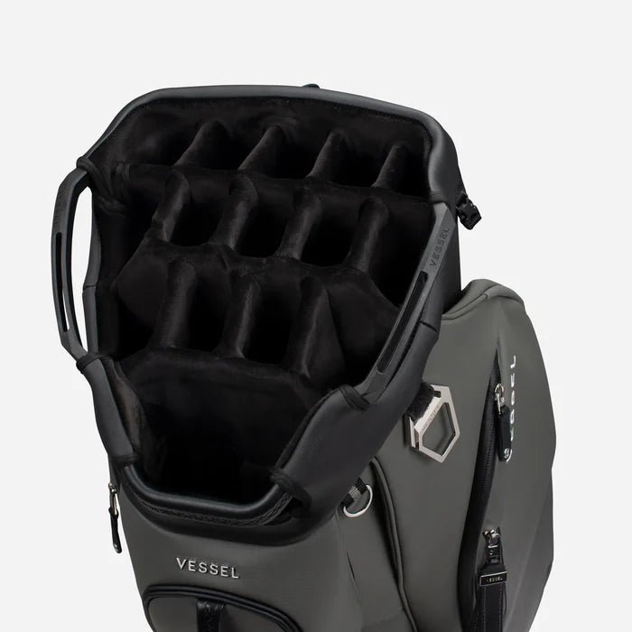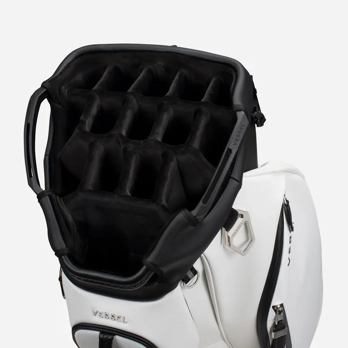Engineered with 22 pockets, forward-facing and dual side compartments, and your choice of a 15-way or 7-way top, the Lux Cart II provides intuitive storage and seamless organization without excess bulk. A reinforced base and cart bracket straps ensure stability across any terrain, while cart-friendly pockets keep essentials accessible throughout your round. Finished with smooth-grain leather at every touchpoint, the Lux Cart II blends refined aesthetics with lasting durability – delivering everything you need, and nothing you don’t.