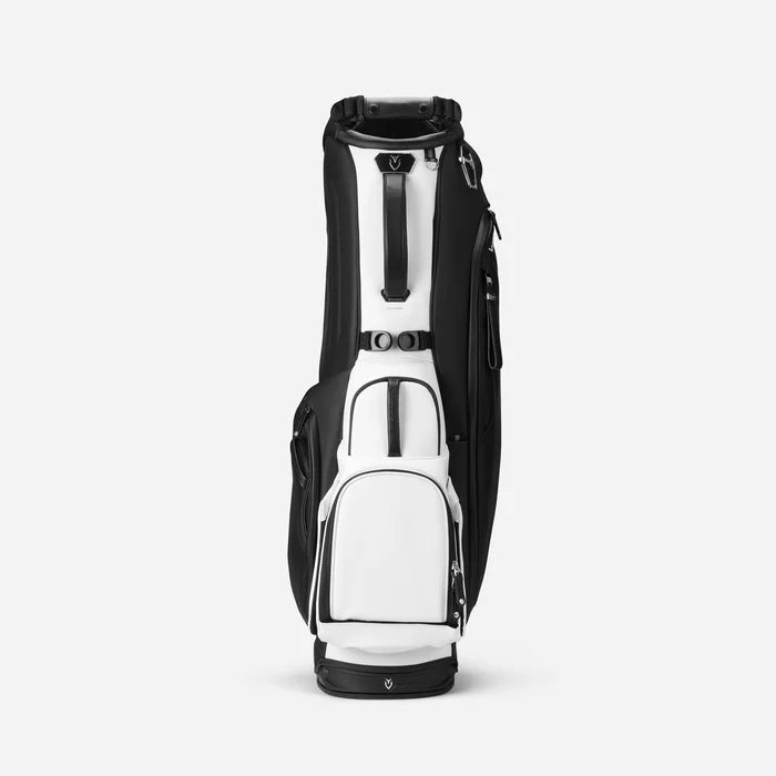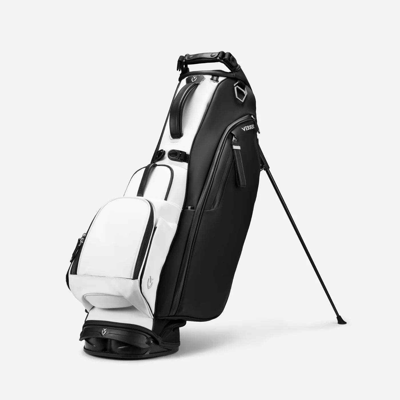 The next generation of golf's most awarded stand bag, the Player V is here to give you the ultimate carry experience. From the hidden valuables pocket to the beverage compartments, each pocket has been carefully designed and placed to improve organization, accessibility and on-course convenience. The Player V utilizes VESSEL's patented technologies (Equilibrium Double Strap and Rotator Base) for maximum balance and superior stability. Intentionally placed high strap-attachment points promote further balance and eliminate club fallout while the bag is being carried. A key feature upgrade is the addition of a cart strap pass-through for added protection on a cart of trolley. The Player V showcases our signature attention to detail through premium trims and tour-grade materials so you can look and play your best.