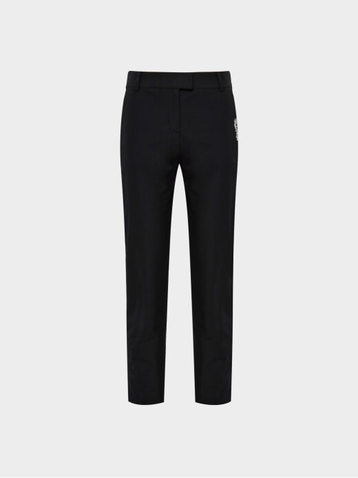 A product with a solid exterior and added accents with back embroidery artwork and cute outer pockets.
