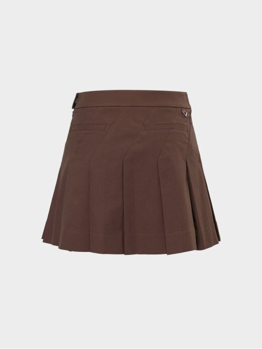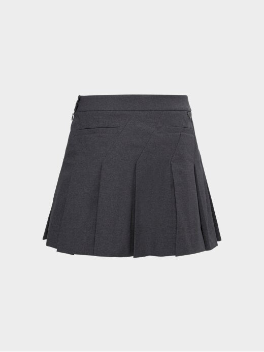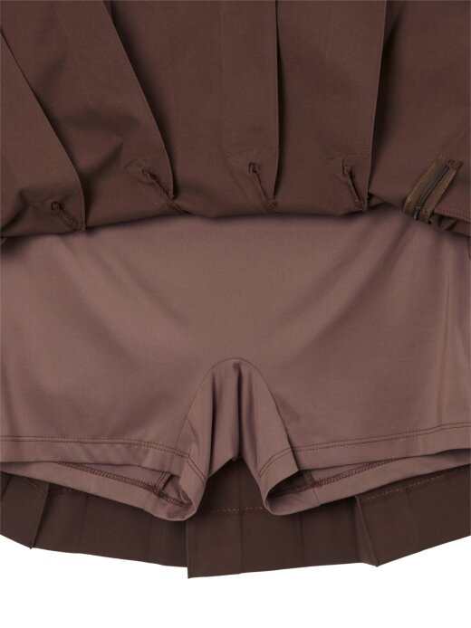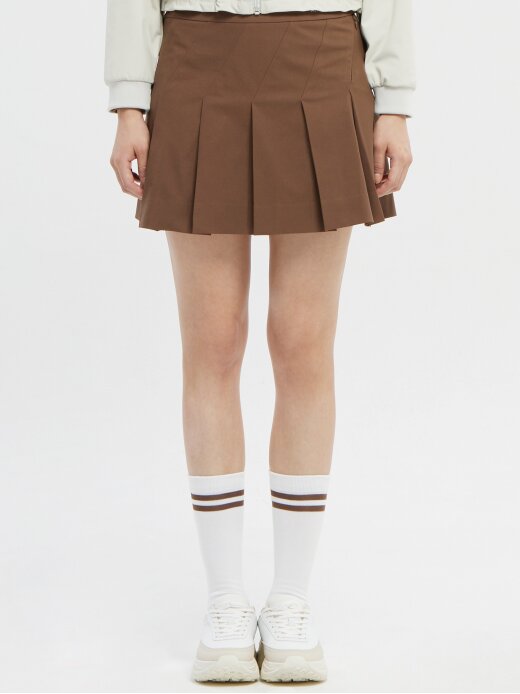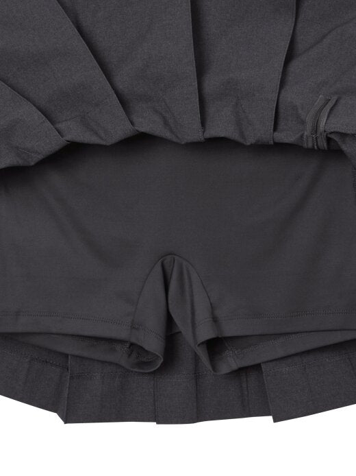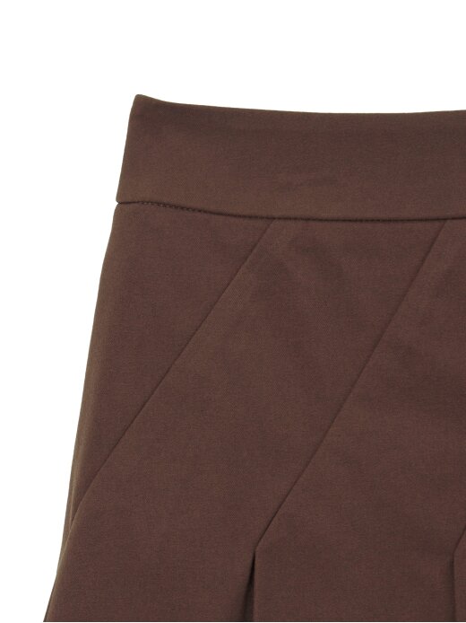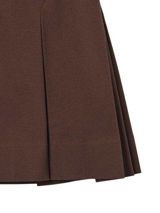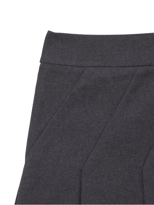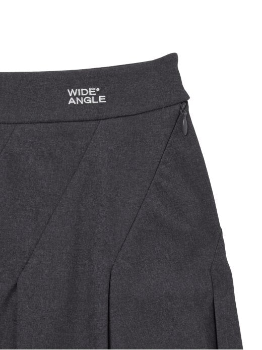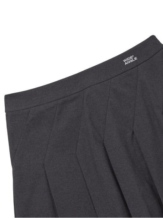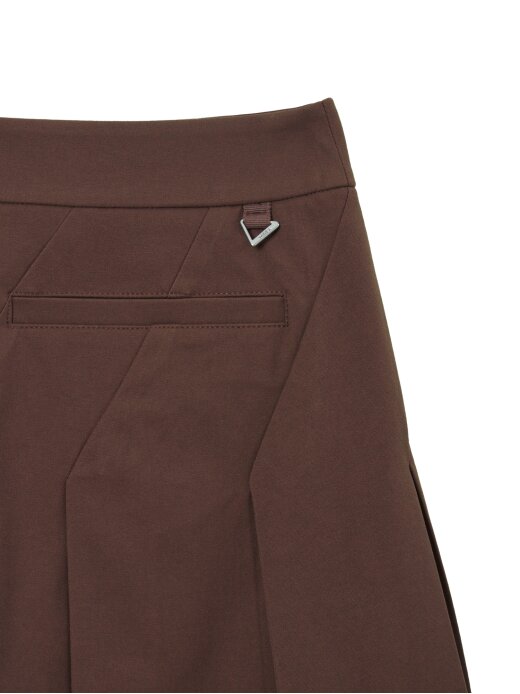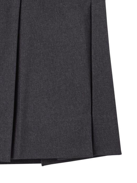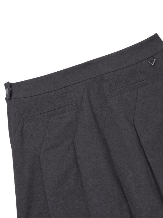 - A pleated culottes with a wool-like appearance but made only of poly yarn, making it light and clean, and featuring a luxurious melange tone.