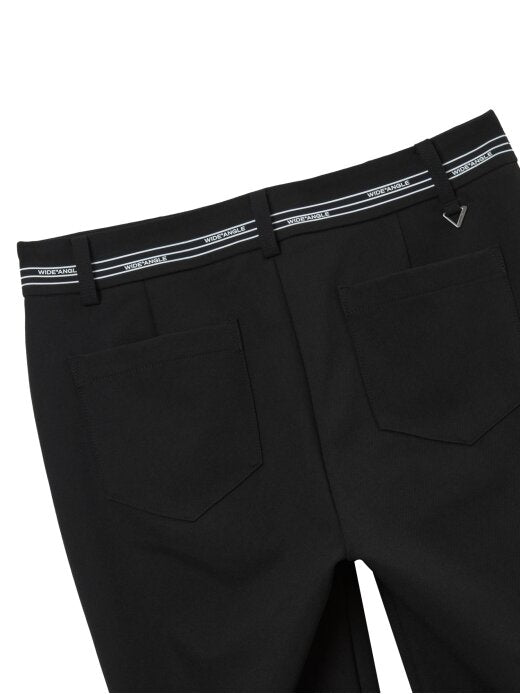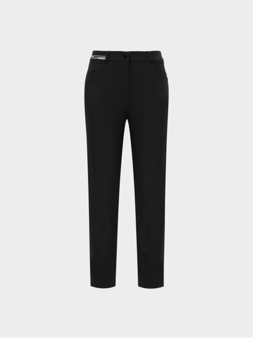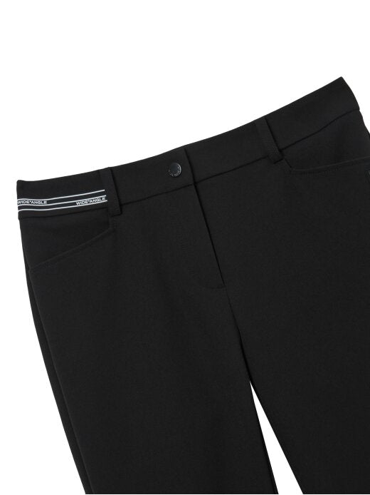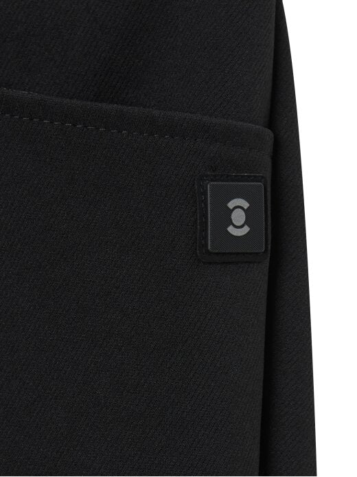 - Double-layer slim-fit pants with four-way stretch and cotton-touch twill texture