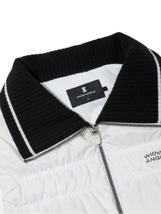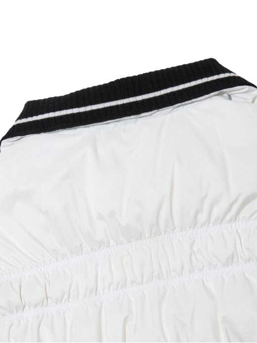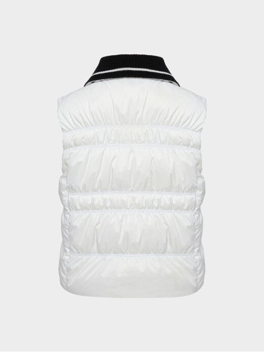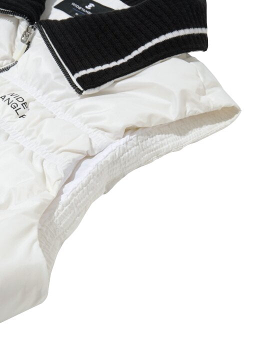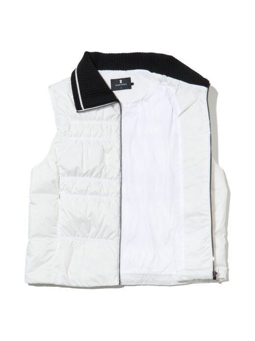 - A goose down vest with shirring quilting that emphasizes a feminine feel.