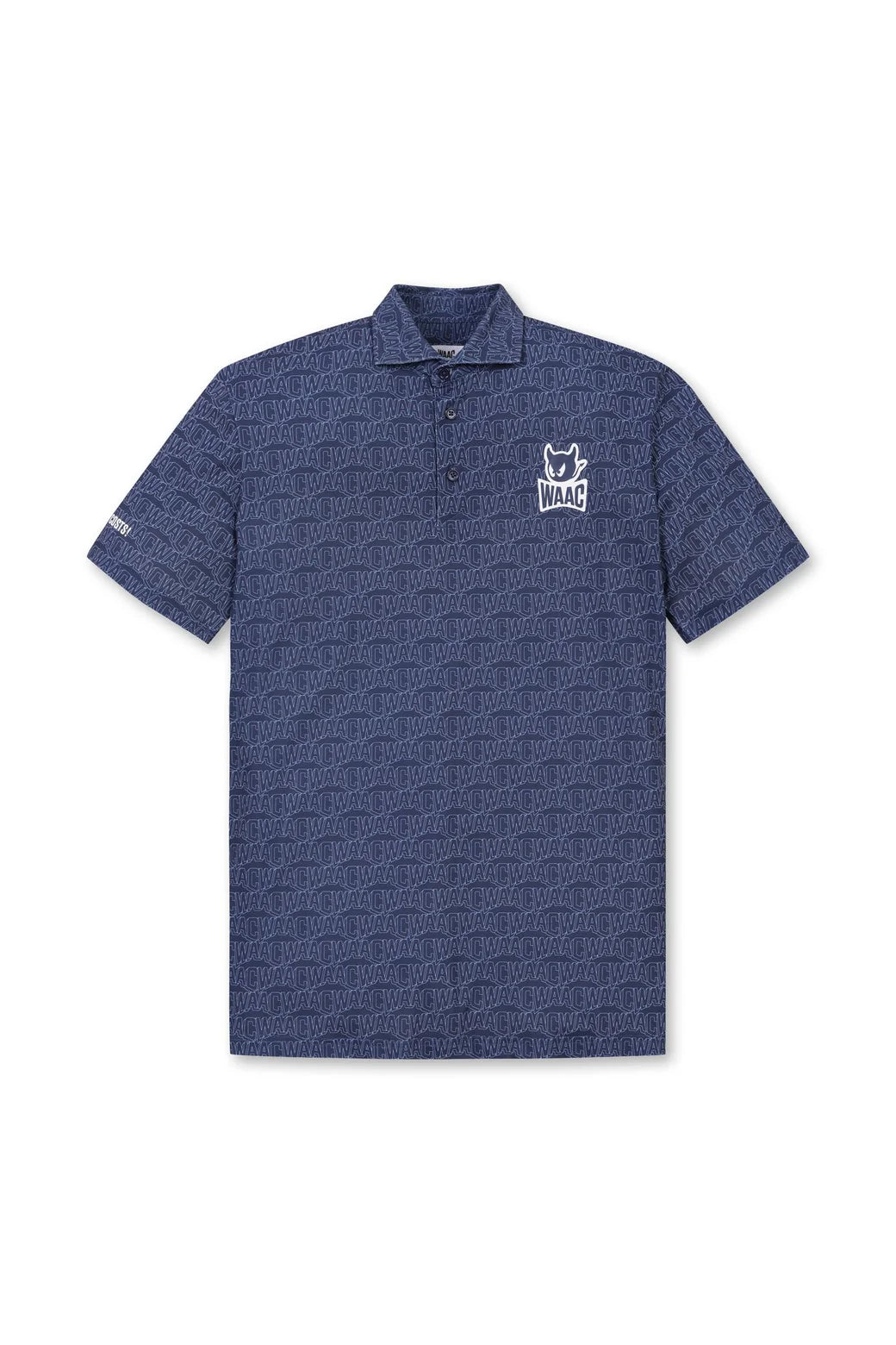 Short-sleeve polo shirt made from polyester/spandex material with WAAC logo pattern print