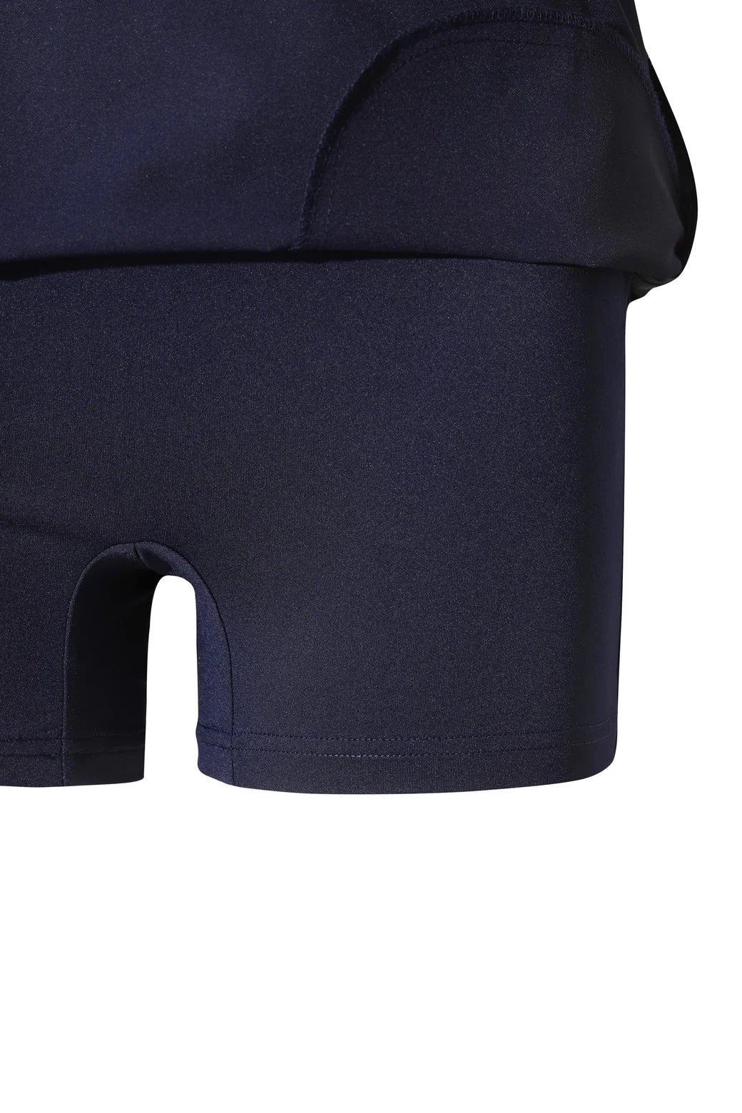 Emphasizes performance with pleated paneling on the back (includes attached inner shorts)